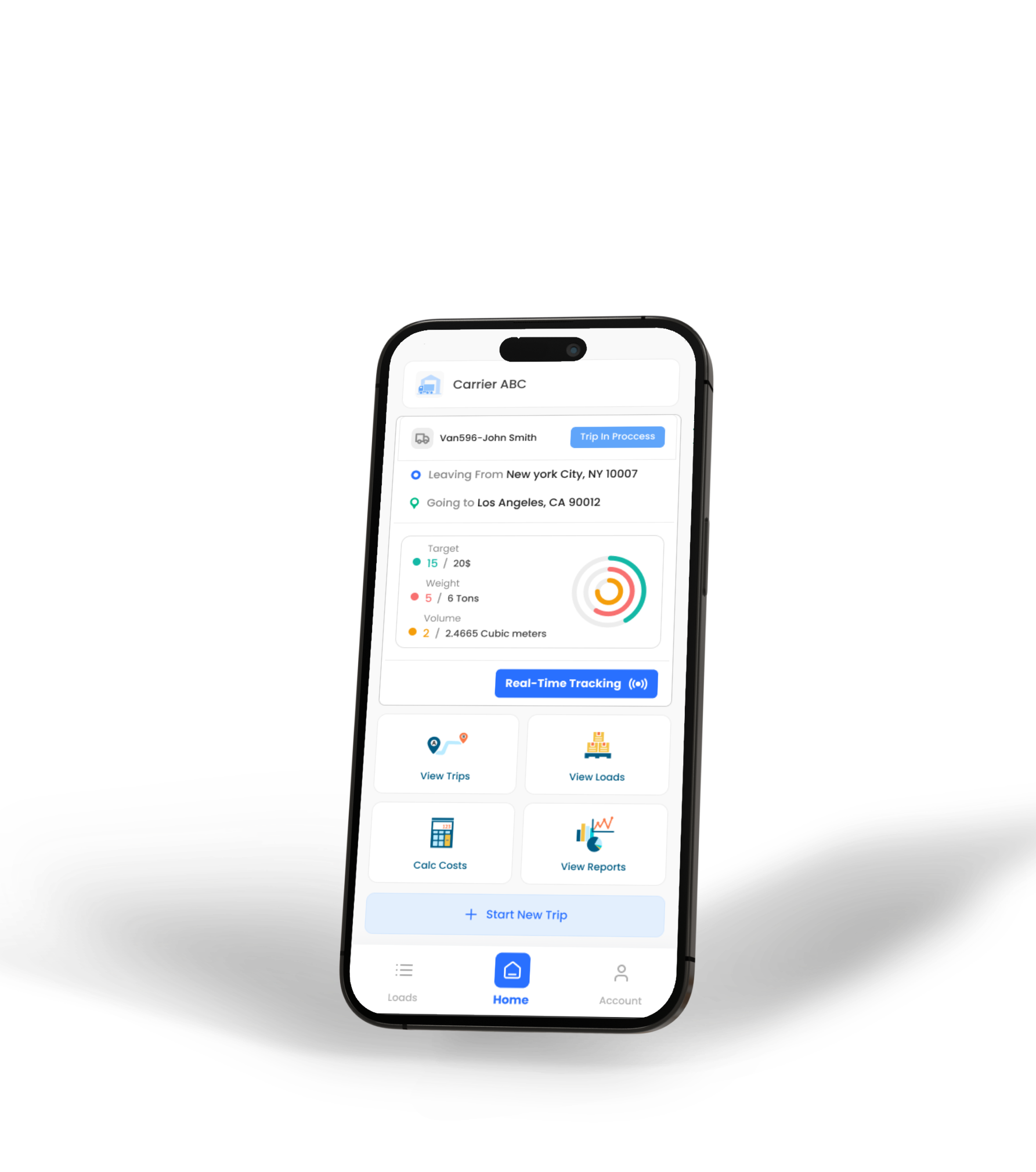 Drivers have the ability to create their own trips and manage deliveries, based on available loads and routes.
